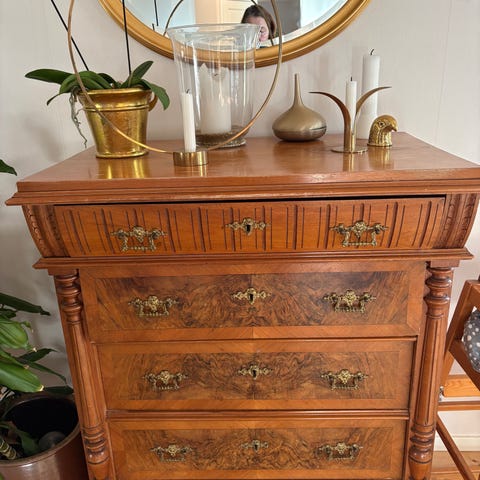 Väldigt fin smyckeskåp ; två långa dörrar plus två små luckor och fem lådor . Mycket bra förvar för alla dina fina smycken.