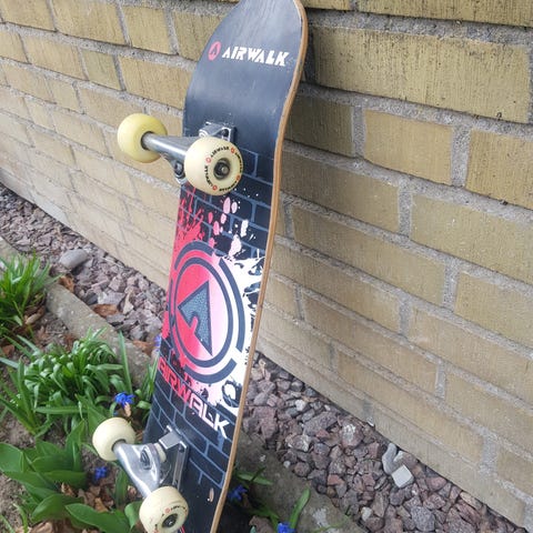 Set med en mindre skateboard och två longboards. Den mindre skateboarden har blått plastdäck med mönstrad ovansida och bruna hjul. De två longboardbrädorna har längre träddäck med svart griptape på ovansidan, den ena med ljus mittlinje och den andra med rutmönstrad undersida och röda hjul. Passar för åkning på asfalt och andra hårda underlag. Säljs tillsammans enligt bilderna.