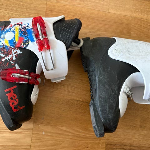 Head pjäxor för barn i svart och blå färg. Innerlängd är märkt 155 mm och yttersula cirka 251 mm.