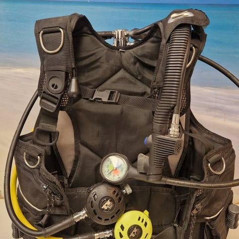 Dykpaket Scubapro / Deepoutdoors med dykregulator Scubapro MK17 S600, octopus Scubapro R195, manometer Scubapro compact och vingväst Deepoutdoors med blåsa 34", comfort harness samt integrerat viktsystem. Utrustningen kommer att säljes i nyservat skick med serviceintyg. Ta del av våra försäljningsvillkor på denna länk! https://dykhuset.se/butiken/