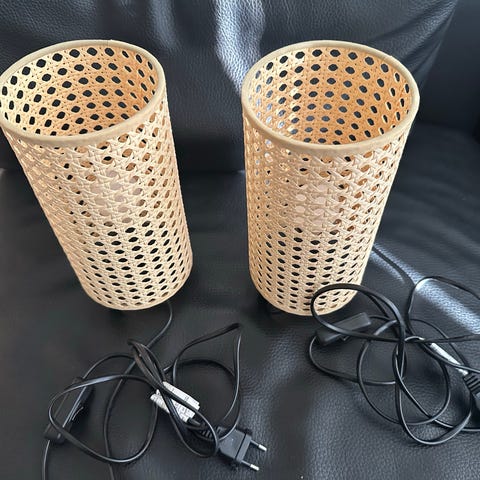 Två styck lampskärmar med lampsladd från Mio. Den mjuka runda formen är handgjord i naturmaterialet sjögräs så de är lite olika i formen. 30 cm i diameter och 40 cm höga.