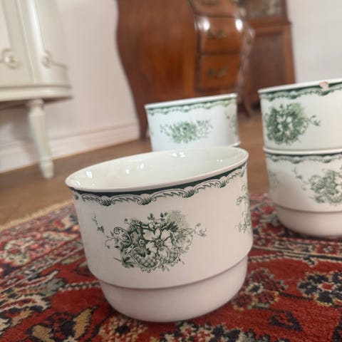 Fina gamla krukor från 50- 60 talet. Lilla krukan 9,5 cm hög och diameter ca 12 cm. Stora krukan 13 cm hög och ca 15,5 cm i diameter.