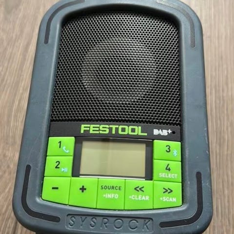 Radion är avsedd för användning på byggarbetsplatser och liknande miljöer. Den har inbyggd högtalare framtill, robusta skyddskanter och bärhandtag. Frontpanelen har digital display, knappar för bandval och inställningar samt volymratt. Bluetooth-funktion gör att extern ljudkälla kan anslutas trådlöst.