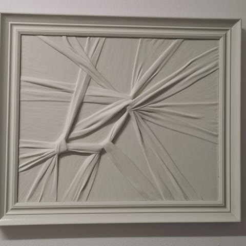 Runt väggkonstverk med abstrakt motiv i olika nyanser av grått och svart. Verket har en strukturerad yta med vågformade linjer och partier som ger en tredimensionell känsla. Passar som dekorativ väggkonst i exempelvis vardagsrum, sovrum eller kontor. Material och exakta mått är inte angivna.