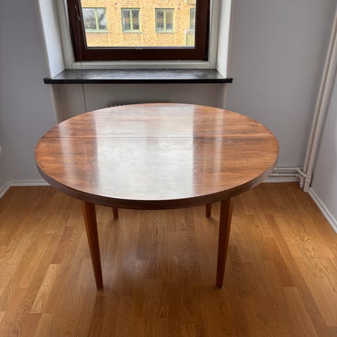 Säljer ett runt matbord från Bolia i fint skick. Sparsamt använt, mest stått i vardagsrummet som andrabord. Mindre fläckor i skivan finns men de har inte stört oss nämnvärt. se bilder. Borddskivan är i ljus ekfanér och underredet i svart metall. Diameter 110 cm, höjd 76 cm. Finns att titta på och hämta vid Stigbergstorget. Betalning med Swish.