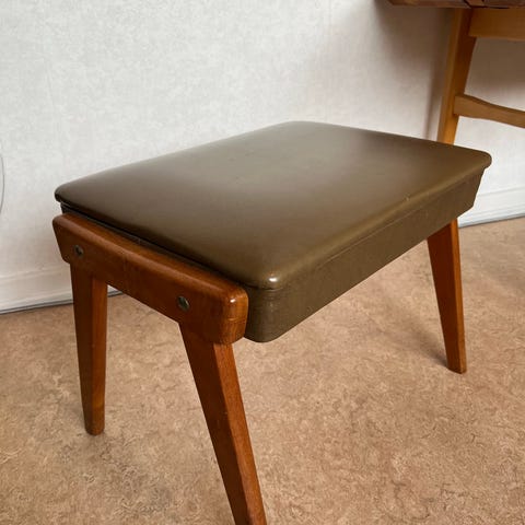 Pall i Ek med en sits i läder, justerbar höjd, väldigt tung och rejäl