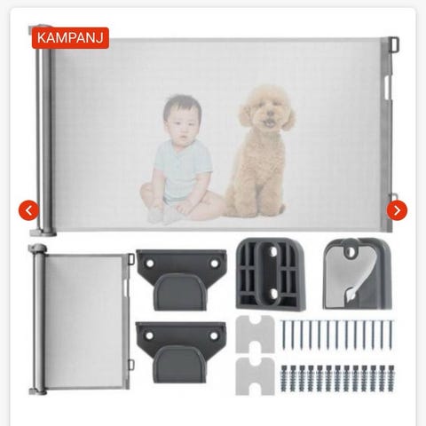 Hej! Biltema barngrind i vit metall med justerbar bredd 63,5–106,8 cm. Grinden är avsedd för att spärra av öppningar, exempelvis dörröppningar eller trappor, för att hindra små barn från att ta sig igenom. Monteras mellan två fasta ytor enligt medföljande anvisningar.