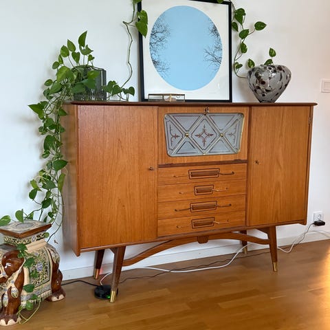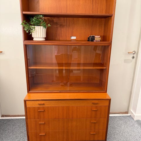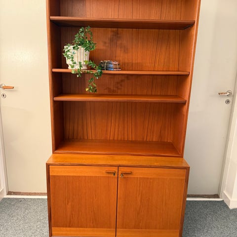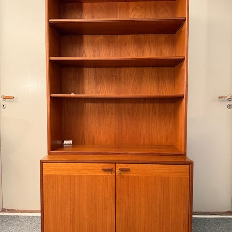 Mycket fint skick med vacker teakådring. Stabil och välbyggd möbel i klassisk skandinavisk stil