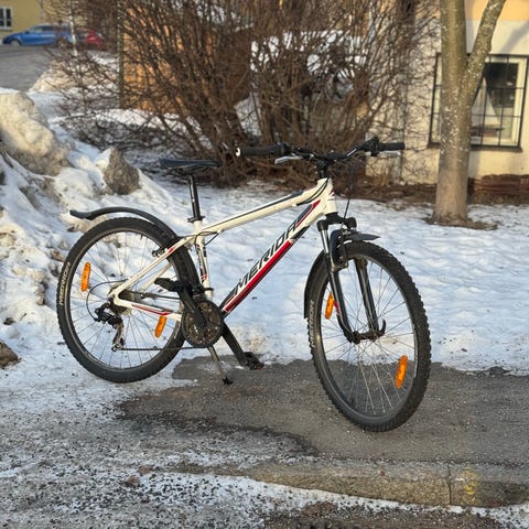 Fin MTV från kayoba med främre dämpare, 7växlar bak och 3 fram samt fram och bakbroms på styret, allt funkar fint och cykeln har nyligen blivit servad och varit väll underhållen. Har vissa märken men inget som påverkar funktionen
