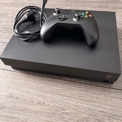Säljer min Xbox One X som har 1 TB hårddisk. Väldigt mycket konsol för pengarna då den klarar 4k på många spel. För ca 1 år sedan bytte jag ut kylpastan (mx-4) och kylkuddarna (Grizzly). Har en del repor och skick kan ses på bild.