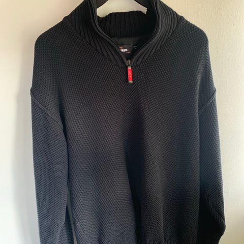Human Nature HN97 herrtröja i storlek XXL. Tröjan är svart och tillverkad i bomull. Modellen har halv dragkedja framtill och ribbstickade muddar vid ärmslut och nederkant. Fickor med dragkedja. Human Nature produkter är designad för utomhusbruk.