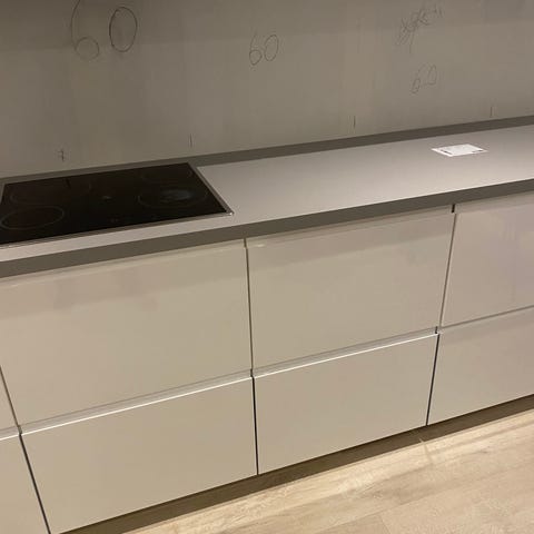 Efter sista minuten ändringar i köket är denna skiva nu 3 cm för kort. Produkten är helt ny och ouppackad.