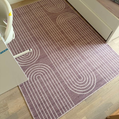 Kraftig handvävdmatta för det lila utrymmet. Hämtas I Kävlinge