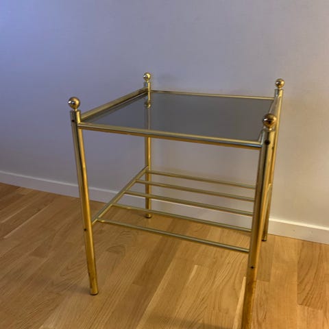 Bruksskick med visst slitage på glas och ram. På ena bordet är glasen är kantstötta (se bilder), men borden är stabila och fullt funktionella.