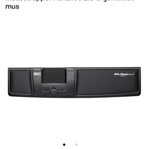 Mousetrapper Advance 2.0 ergonomisk mus i svart utförande. Centralt placerad styrplatta med knappar för klick och navigering samt handledsstöd på båda sidor. Ansluts till dator som alternativ till traditionell mus och är avsedd att användas tillsammans med tangentbord. Passar för kontorsarbete och andra datorarbetsplatser där man vill arbeta med händerna nära kroppen framför tangentbordet.