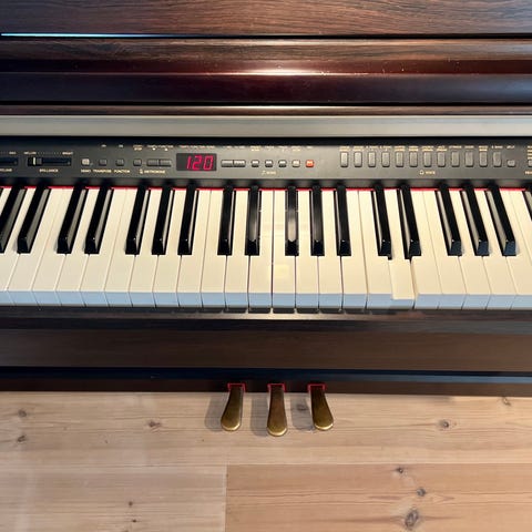 Roland digitalpiano i svart utförande. Fullstort klaviatur med 76 tangenter. Panel med flera funktionsknappar och anslutningar på baksidan, bland annat hörlursuttag och ljudutgångar. Passar för hemmabruk, eller tillbehör enligt bilderna.