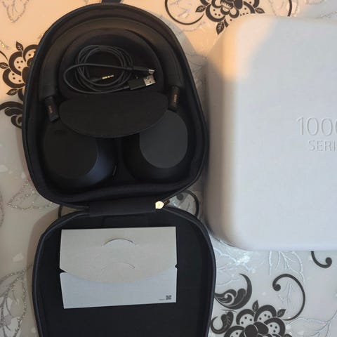 Sony WH-1000XM5 hörlurar over-ear i svart färg. Trådlösa over-ear-hörlurar med vadderade öronkuddar och justerbart huvudband. Levereras med hårt resefodral och laddkabel enligt bilder. Lämpliga för användning med mobil, surfplatta och dator via Bluetooth-anslutning.