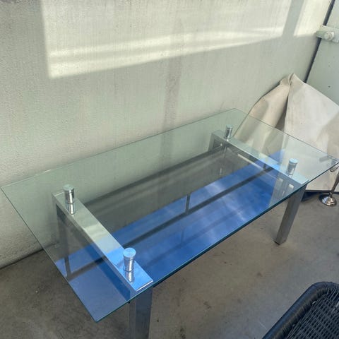 Vackert soffbord i gediget trä med glasskiva och hylla. Nypris på IKEA: 1.700kr.