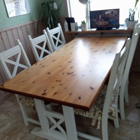Köks bord med 4 vita stolar biligt