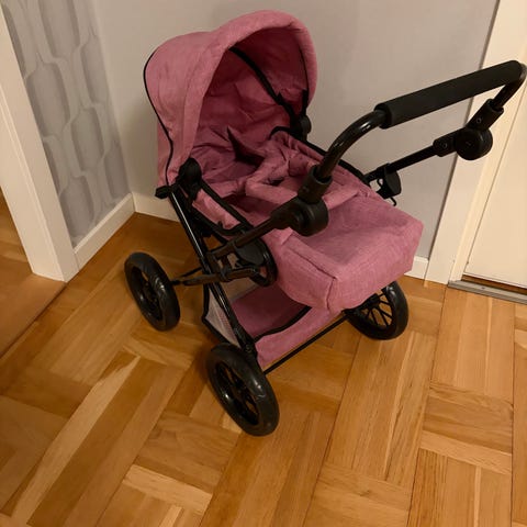 BRIO dockvagn i klassisk modell. Vagnen har tyg med färgglada prickar och svart chassi med fyra dubbelhjul. Justerbart handtag och sufflett som kan fällas. Passar för dockor och gosedjur vid lek inomhus och utomhus.