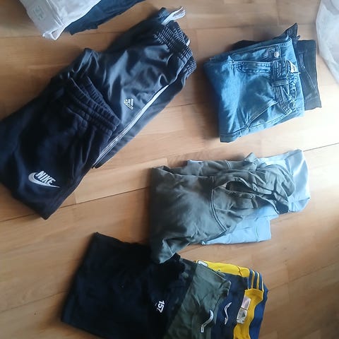 Adidasbyxa, två T-shirts (som man kanske har under andra kläder), pyjamasbyxor, underställsdelar. Samfrakt!