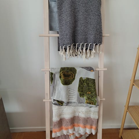 Höjd 130 cm, går att hänga upp på väggen.
