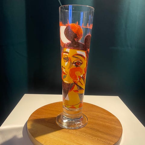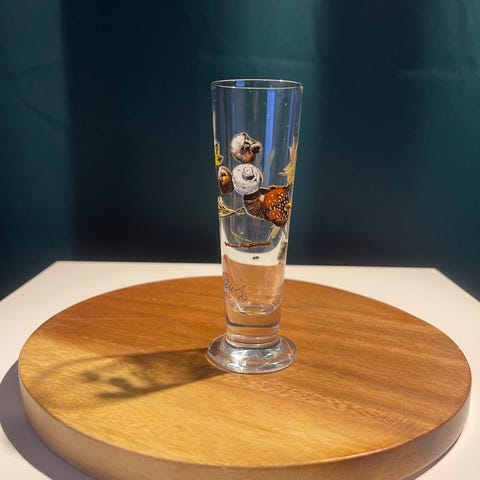 Ett snapsglas "Plumpmus", designat av den svenska konstnären Lasse Åberg.