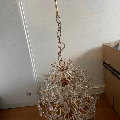 Taklampa rund med glasplismor. Inköpt på Bauhaus 2024.