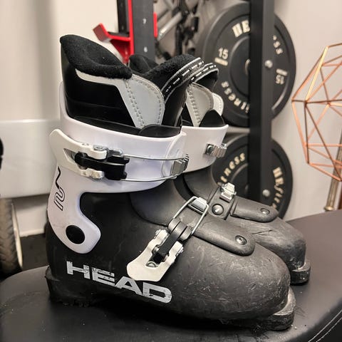 för barn i vit och rosa färg. Pjäxorna har justerbara spännen och rejäl sula med gummipartier för bättre grepp vid gång. Passar för alpin skidåkning och är utformade för att ge stöd och stabilitet för yngre åkare.