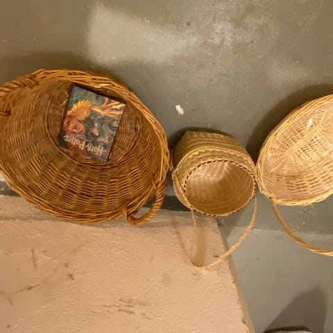 Gammalt trä kar. Höjd 55 cm, längd 105 cm, bredd 73 cm. Band saknas upptill där spännbanden är på bilden
