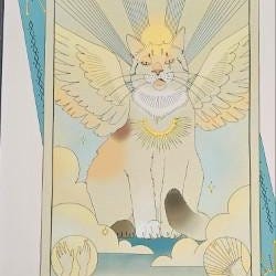 Rund varningsskylt beware of cat gul svart röd