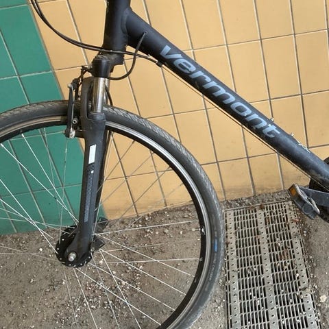 Cykeln har inte använts på ett tag, så däcken är lite trötta och kan behöva pumpas eller bytas framöver.