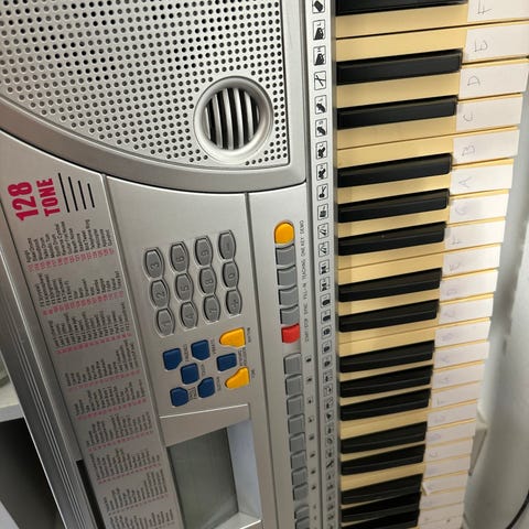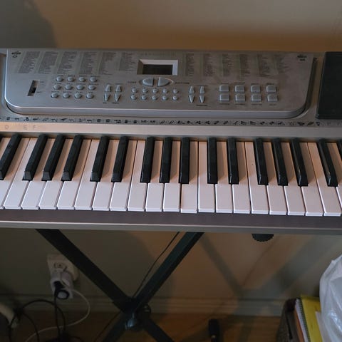 Supreme M10 keyboard i silverfärg. Fullt fungerande. Elektroniskt tangentbord med inbyggda högtalare, display och notställ. Modellen har ett urval förprogrammerade låtar, olika ljud och rytmer samt funktioner som bland annat MTS och MIDI-anslutning enligt märkning på instrumentet. Passar för hemmabruk och övning på piano och keyboard.