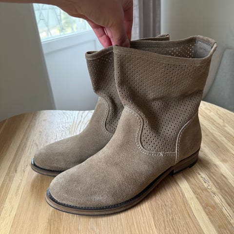 Skorna är i fint beg skick. Jag tar väl hand om mina skor och de är sparsamt använda.