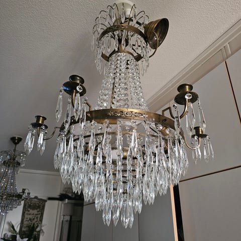 En fint stort och unikt äldre kristallkrona med djurmotiv.
