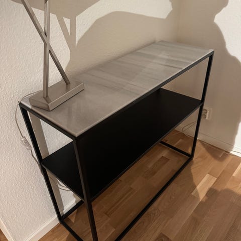 Säljer konsolbord i vit metall i fint skick. Den har två plan. Från butiken svenska hem. Nypris 2000 kr mitt pris 500 kr