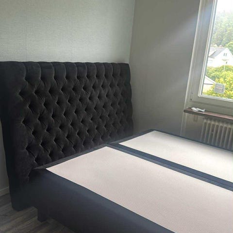 Har borrat hål så bult kan dras genom sängen för att de ej ska glida isär. Muttrar och skruvarna kan medföljas om så önskas. Om ej används kan man ställa den ihop så de ej syns.
