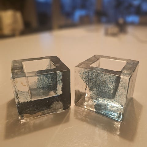 Kosta Boda The Rock ljuslykta i rosa glas. Ljuslyktan har en skulptural, bergliknande form med plats för ett värmeljus i mitten. Tillverkad i massivt glas med ojämn, strukturerad yta som reflekterar ljuset. Levereras med originalkartong enligt bild.