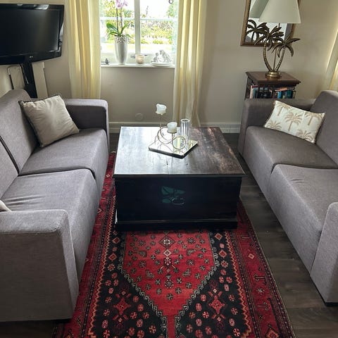 Sofforna är bekväma med bra sittdjup och stadiga dynor. De är väl omhändertagna och i fint skick. Stabil stomme och sköna armstöd gör att de passar lika bra för mysiga hemmakvällar som när du har gäster.
