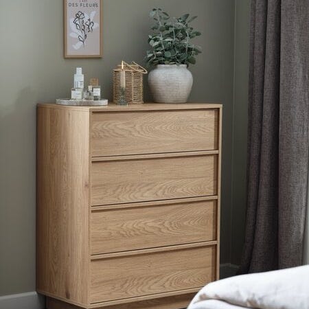 Byrå i nyskick från Jysk i ljus ek säljs för 400kr - ordinarie pris 900kr.