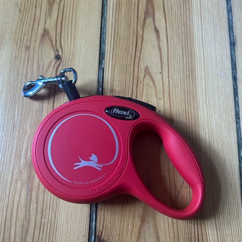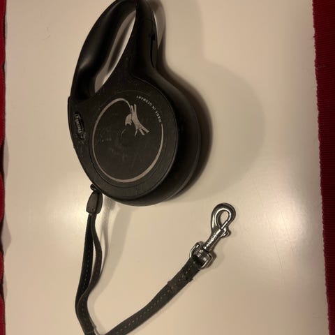 Flexi hundkoppel i rullkoppelsmodell. Koppeldel i grön färg med svart plasthandtag. Utrustad med hake för fastsättning i hundhalsband eller sele. Band 5m.