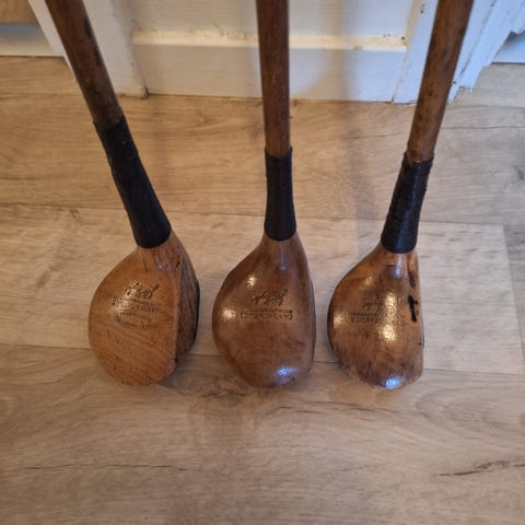 Burke träklubbor 3 st driver brassie spoon retrogolf persimon