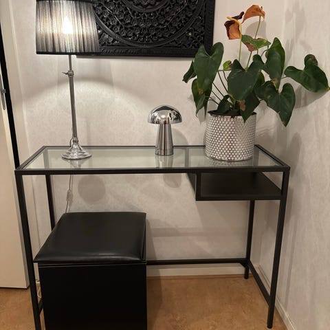 Avlastnings bord / skänk i metall med glas skiva från IKEA. Mycket gott skick.
