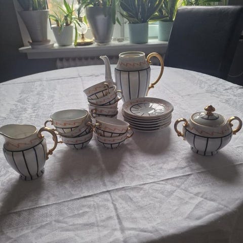 Består av kaffekanna, sockerskål och gräddkanna.