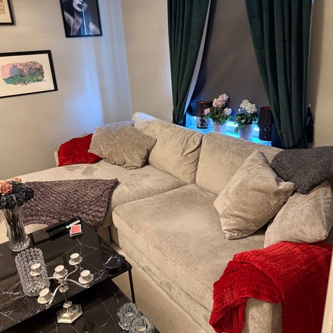 Soffan är väl omhändertagen, från rök- och djurfritt hem och i mycket gott skick. Inga större fläckar eller skador.