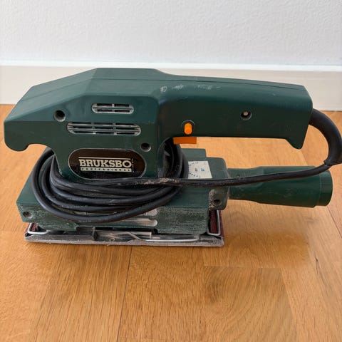 Bosch PSS 250 AE planslip i grön färg. Elansluten slipmaskin med rektangulär slipplatta, lämplig för slipning av trä och andra släta ytor. Utrustad med handtag med gummigrepp och anslutning för dammutsug. Passar för användning med standard slipark som fästs på slipplattan.