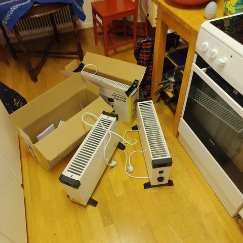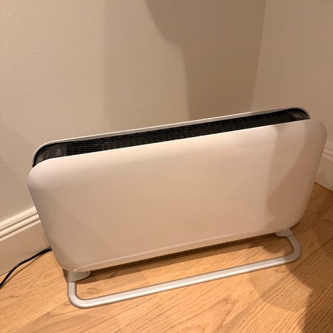 Heater / used twice. Super nice and friendly but we moved to a new flat that is warmer so we don’t need it. It’s super light (not heavy)