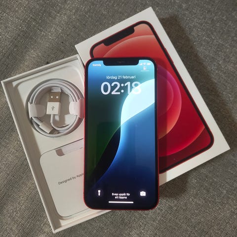 Apple iPhone 12 smartphone med 64 GB internminne. Modellen har en svart färg och är utrustad med dubbla bakre kameror och skärm med helframsida. Passar för vardaglig användning som samtal, meddelanden, surf, appar och media. Enheten har Lightning‑kontakt för laddning och anslutning av tillbehör. Batterihälsa 78%