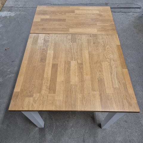 Säljer två stycken bänkskivor i lackerad ljus stavlimmad ek. De har tidigare suttit ihop och använts som en större arbetsbänk, men säljs nu som två separata skivor.