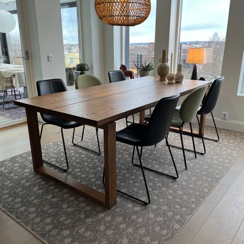 Större matbord i trä, vet ej fabrikat. Gjort för att kunna ha iläggsskiva i men jag har ingen.